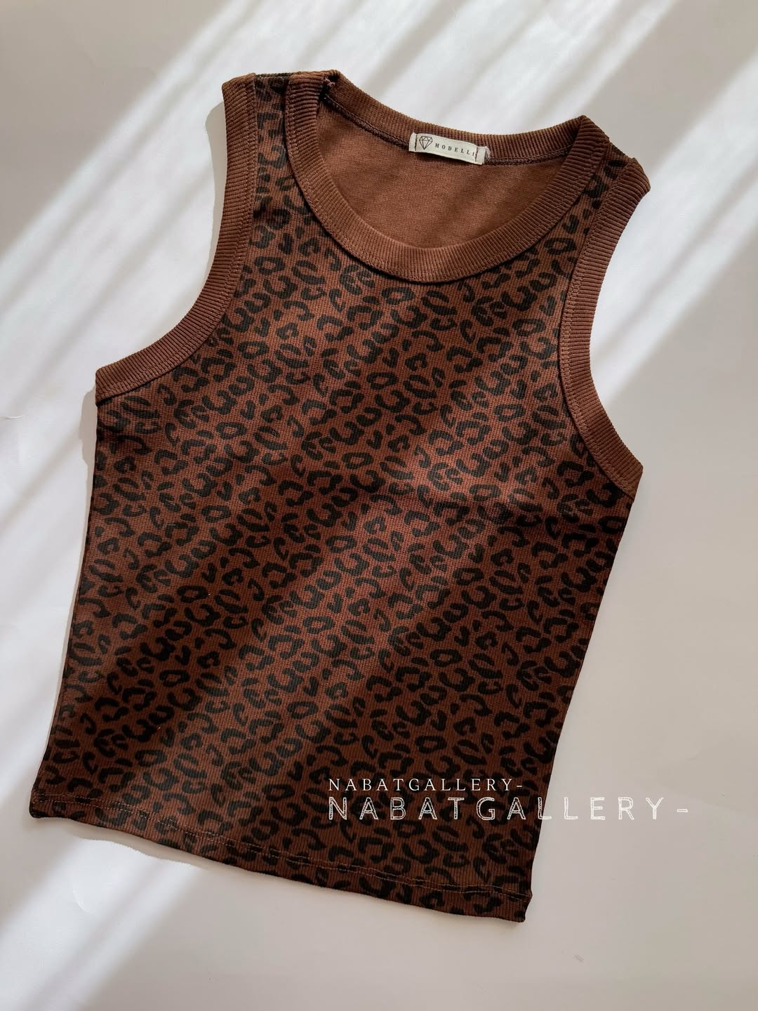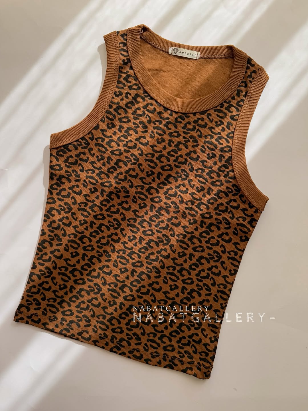 کراپ تاپ پلنگی کبریتی پنبه ایی فری سایز قد ۵۵سانت